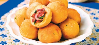 12. Com o auxílio de 2 colheres (sopa), modele os bolinhos e coloque-os na assadeira reservada.